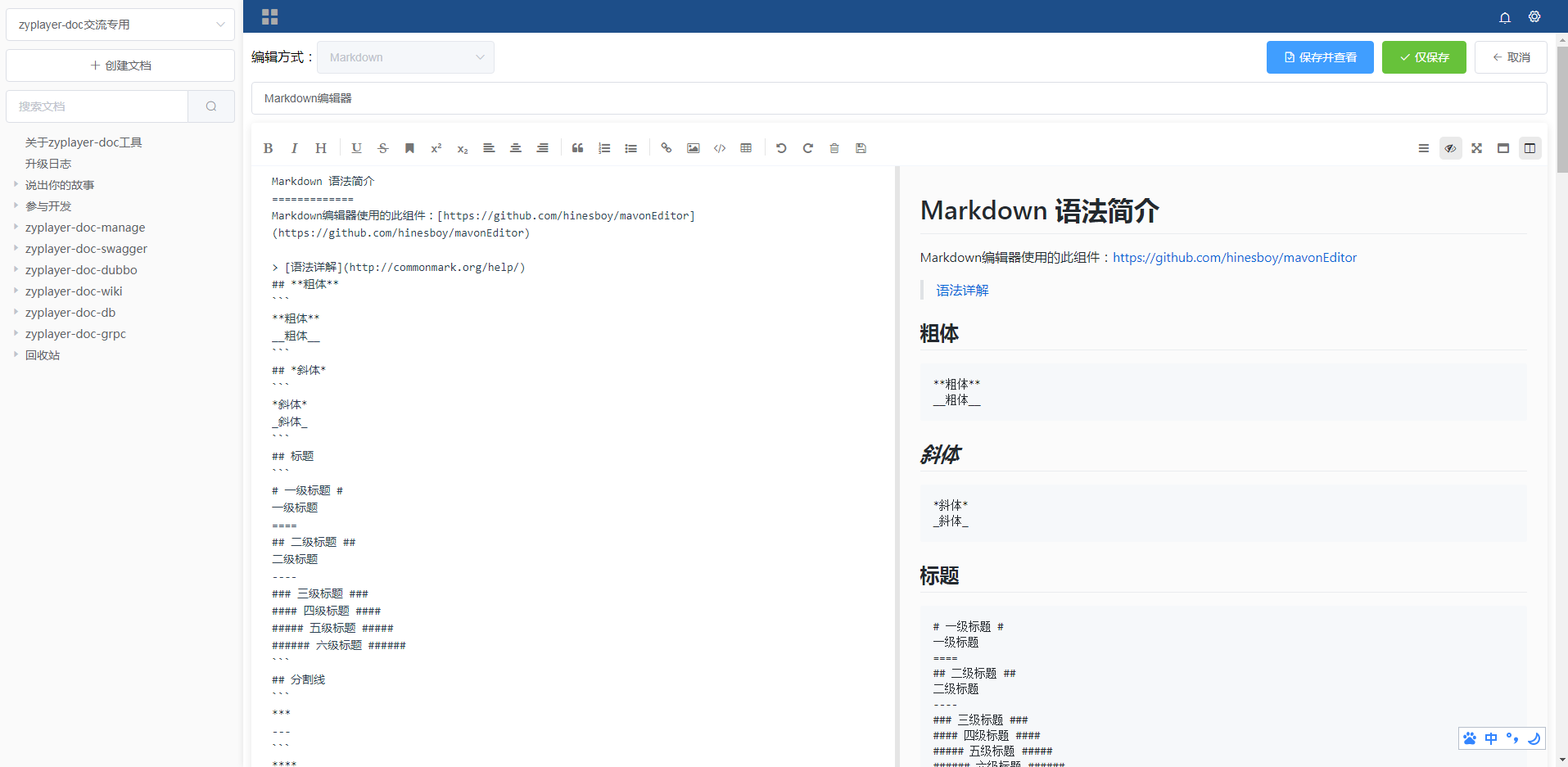 在线体验地址:http://doc.zyplayer.com 账号:zyplayer 密码:123456