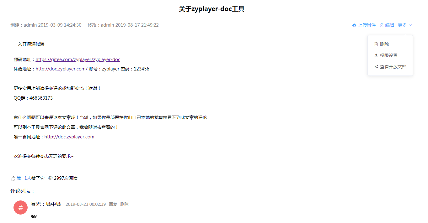 项目开源地址:https://gitee.com/zyplayer/zyplayer-doc