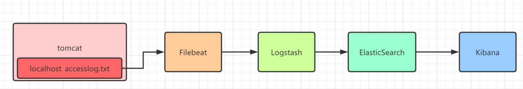 Tomcat Access Log中存放了很多有用的信息,将这些信息利用起来,就可以我们的统计目标。 完整流程为: Filebeat 收集Tomcat Access Log,将数据发送到 Logstash,然后 Logstash 对数据进行处理,并将处理后的数据发送到 ES,最后再用 Kibana 进行数据展示。