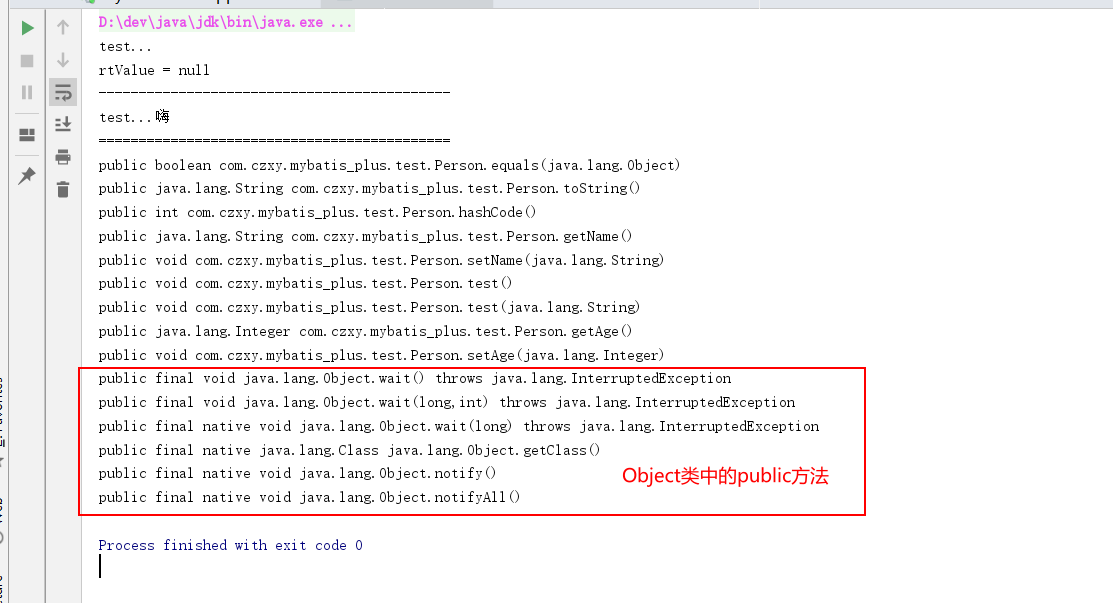 我们可以看出Person内的public方法都被打印出来了,此外Object中的public方法也都被打印出来了。