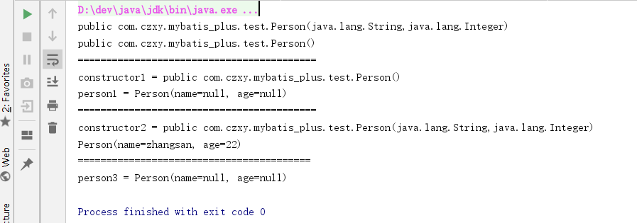 Object person2 = constructor2.newInstance("zhangsan", 22); //获取的是有参的构造方法,就必须要指定参数