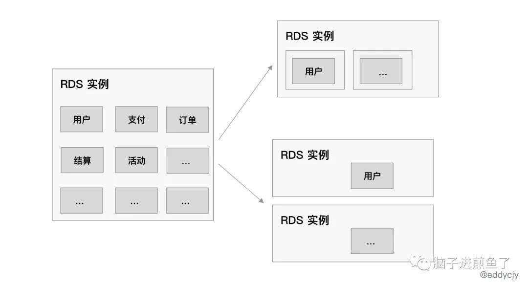 而在业务量上来后,也会对业务数据库进行硬隔离,分配特定的 RDS 实例,就不会互相影响了。