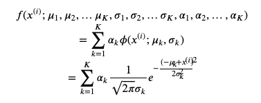 则高斯混合模型的概率密度函数可以表示成如下形式:
