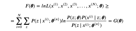 从原则上说,在一些较为简单的情况下我们也能够使用梯度下降法求解对数似然的最优值,例如当隐藏变量Z是离散随机变量时,且可取值较少,我们很容易将对z的求和表示出来,从而可以计算梯度进而使用梯度下降法。