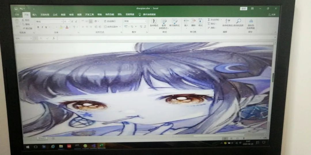 #遍历循环图片,获取各像素点位置的像素值,并利用openpyxl改写对应位置单元格颜色for y in range(1, height):print("第几行:",y) #供查看进度for x in range(1, width):Blue_value = srcImage[y,x,0] #获取蓝,绿,红三个通道Green_value = srcImage[y,x,1]Red_value = srcImage[y,x,2]color = (Red_value,Green_value,Blue_value) #转为元组并附给color_transform函数得到16进制hex_ = color_transform(color)fille = PatternFill(fill_type='solid',fgColor= hex_) #设置颜色sheet.cell(y,x).fill=fille #openpyxl进行颜色填充