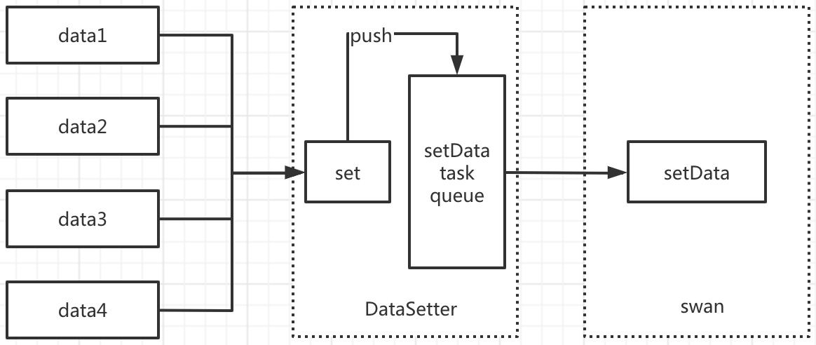 DataSetter 将小程序 setData 操作封装为一个队列式的渲染任务管理器,使用 DataSetter 进行 set 数据操作,可以使得单位时间内只有一个 setData 操作被执行,而其他被同时 set 的数据,将在队列中排队依次执行。