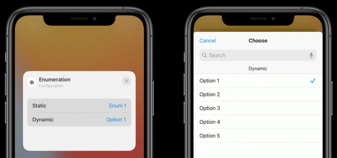 在用户进行 Widget 配置时,WidgetKit 可以通过 Intent Handling Protocol 从我们的 Widget Extension 或 Host App 获取要显示的待选项列表(这一点在后面会详细讲到)。