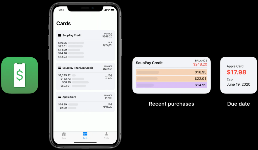 为了更好的解释相关概念,这个 session 使用了一个信用卡记账示例应用,这个应用实现了两个 Widget: