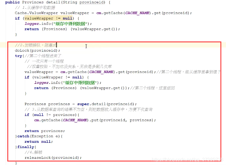 } else { //这个时候代表同时候的其他线程已经load db并回设到缓存了,这时候重试获取缓存值即可