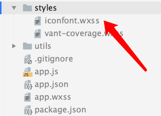 下载到本地是一个压缩包,解压缩之后将 iconfont.css 文件复制到微信小程序的 styles 文件夹中 (在下的习惯,也可以放到你想放的地方比如 fonts),将后缀改为 .wxss