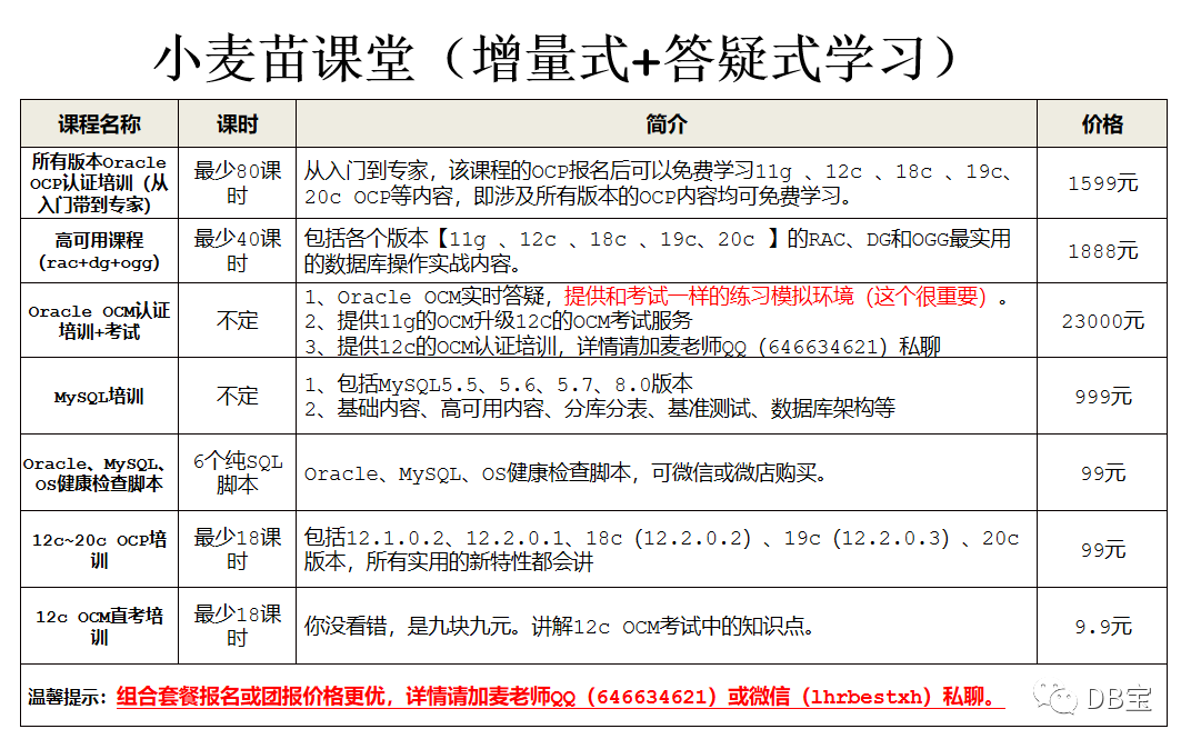 ● 提供Oracle OCP、OCM、高可用(rac+dg+ogg)和MySQL最实用的技能培训