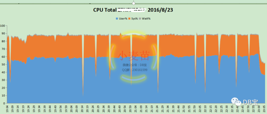 有一套数据库做测试的时候,CPU利用率很高,同事已经抓取了CPU和AWR的信息。发生问题的时间段是19点到23点,其中,nmon数据截图如下所示: