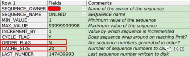 1SELECT * FROM DBA_SEQUENCES D WHERE D.sequence_name='ONLNID' ;