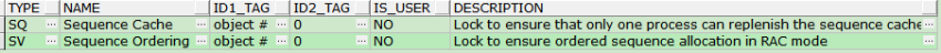 1SELECT * FROM V$LOCK_TYPE D WHERE D.TYPE IN ('SV','SQ');