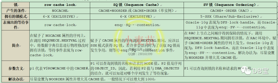 事实上,Oracle为了管理序列使用了如下表所示的三种锁: