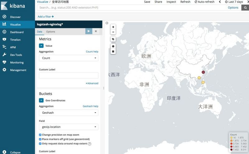 /usr/local/kibana-6.5.4-linux-x86_64/config/kibana.yml #增加高德地图tilemap.url:'http://webrd02.is.autonavi.com/appmaptile?lang=zh_cn&size=1&scale=1&style=7&x={x}&y={y}&z={z}'