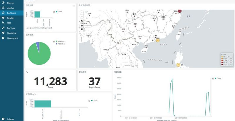 使用filebeat收集nginx日志,输出到kafka;logstash从kafka中消费日志,通过grok进行数据格式化,输出到elasticsearch中,kibana从elasticsearch中获取日志,进行过滤出图.