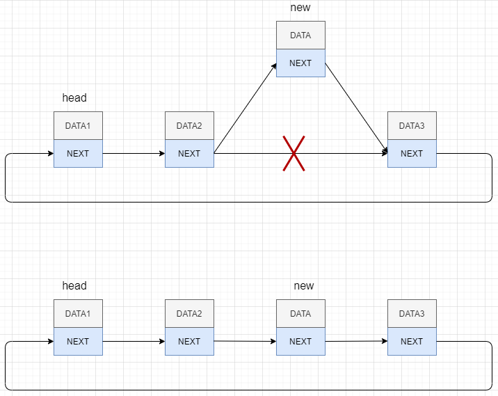 需要注意的是尾结点,因为删除尾节点后,尾节点前一个结点就成了新的尾节点,这个新的尾节点需要指向的是头结点而不是空。
