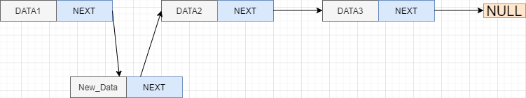 如图,对于插入数据的操作,可以创建一个独立的结点,通过将需要插入的结点的上一个结点的next指针指向该节点,再由需要插入的结点的next指针指向下一个结点的方式完成插入操作。