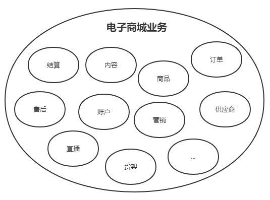 现在你可以开始尝试划分你应用内的业务领域。以一个商城为例子,它可能会包括用户、商品、货架、订单、结算、账户等内容。