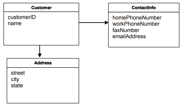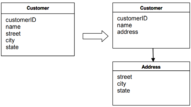 用来描述领域的特殊方面,且没有标识符的一个对象,叫做值对象。例如画布上的一个点 Customer 会跟姓名、省份、城市、区、街道相关。最好是将地址分离出来,保留对地址的引用,因为它们都是同一个址属性。