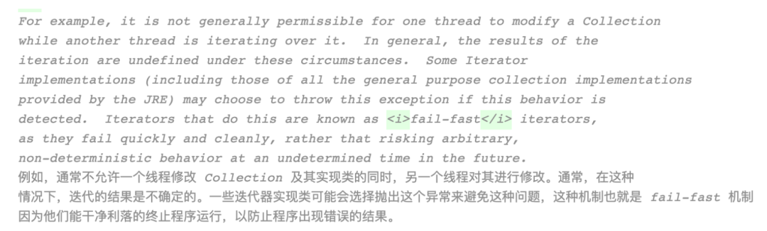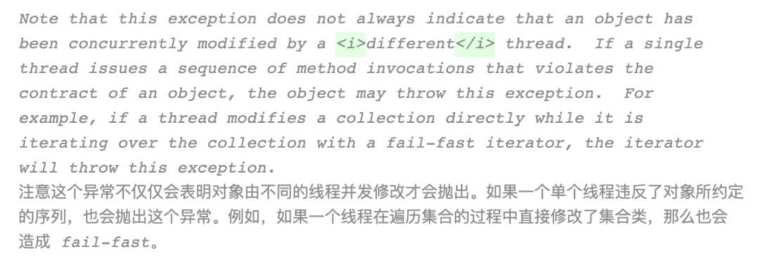 如果查看过 ConcurrentModificationException 的注解,你会发现,ConcurrentModificationException 抛出的原则由两种,如下
