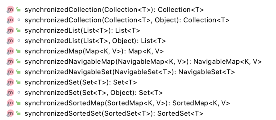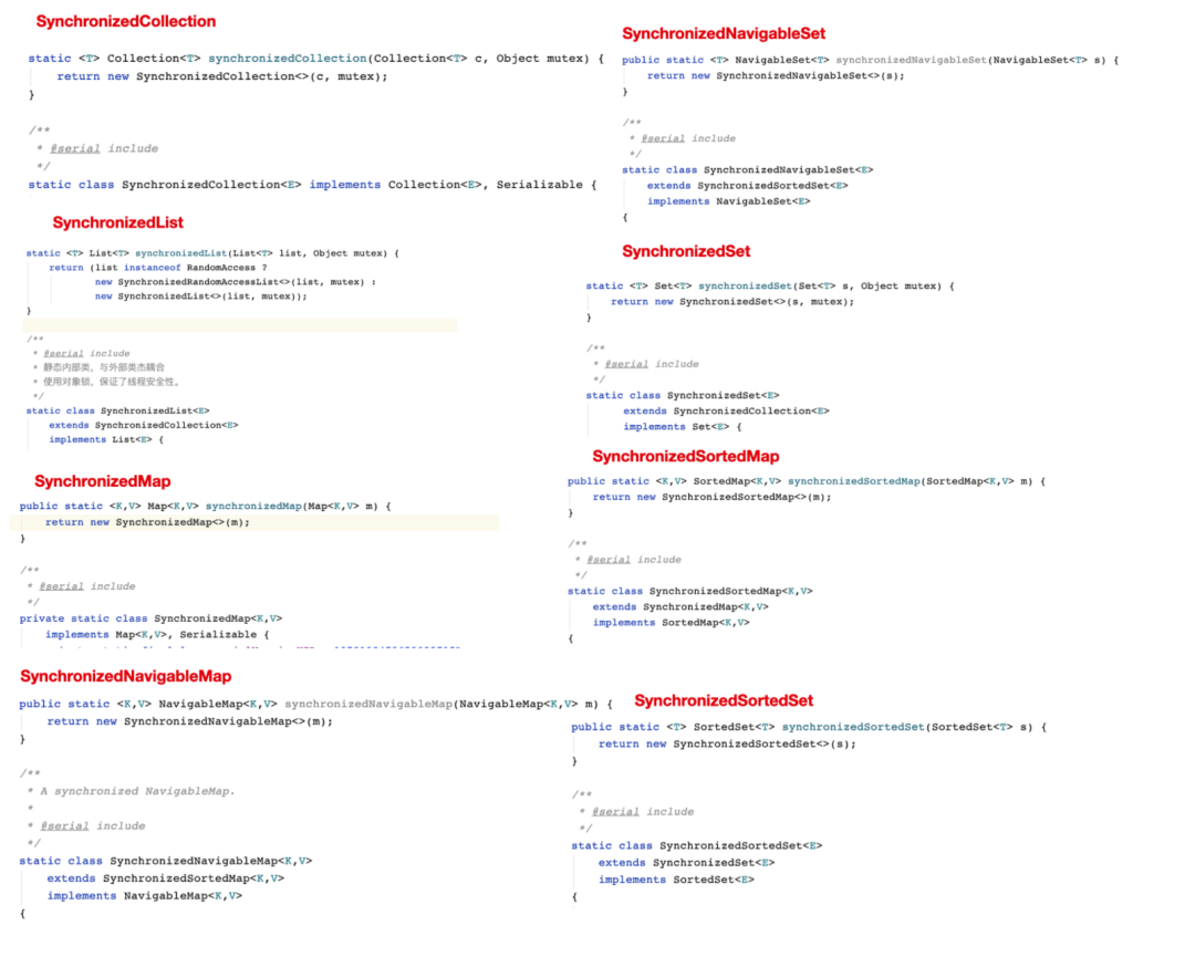 我们可以通过 Collections 源码可以看出这些线程安全的实现