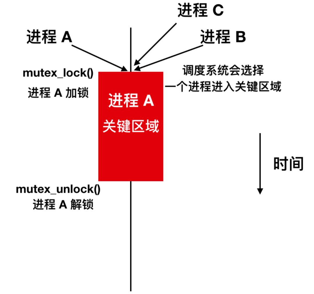 mutex 使用两个过程,当一个线程(或者进程)需要访问关键区域时,会调用 mutex_lock 进行加锁。如果互斥锁当前处于解锁状态(表示关键区域可用),则调用成功,并且调用线程可以自由进入关键区域。