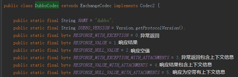 另外,再说一下返回的类型,讲到后面的时候需要知道这个点。主要依据这个类里面定义的字段:org.apache.dubbo.rpc.protocol.dubbo.DubboCodec