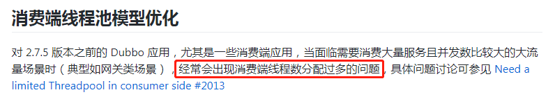 所以,对于官网中,红框框起来这个地方的描述是有问题的:http://dubbo.apache.org/zh-cn/docs/user/demos/consumer-threadpool.html