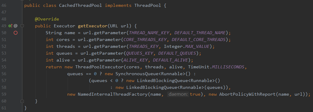 对于线程池客户端的默认实现是 cached,服务端的默认实现是 fixed。