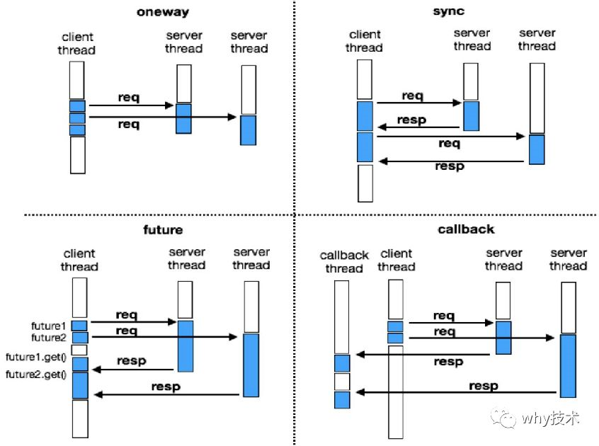 在 rpc 中既然是 request ,那么就分为两种调用方式:有去无回(单向)、有来有回(双向)。