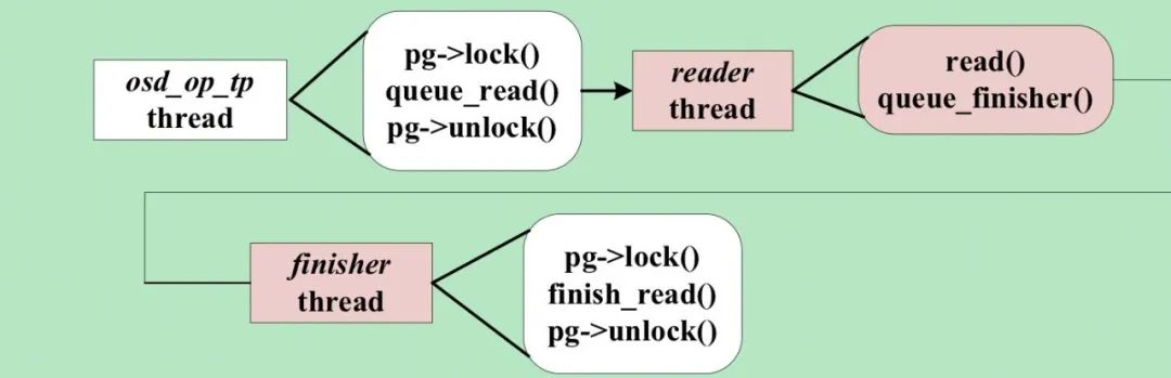 在进行读操作时,如果数据没有命中page cache而需要从磁盘读,是一个耗时的操作,并且pg lock是一个相对粗粒度的锁,在pg lock持有期间,其它同属一个pg的对象的读写操作都会在加锁上等待,增大了读写延迟,降低了吞吐率。同步读的另一个缺点是读操作没有参与流量控制。