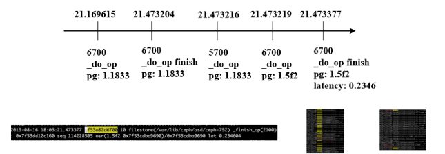 Ceph的日志系统实现是有一个全局的日志缓存队列,由一个全局锁保护,由专门的日志线程从日志缓存队列中取日志打印。工作线程提交日志时,需要获取全局锁。日志线程在获取日志打印之前,也需要获取全局锁,然后做一个交换将队列中的日志交换到一个临时队列。另外,当日志缓存队列长度超过阈值时,提交日志的工作线程需要睡眠等待日志线程打印一些日志后,再提交。锁的争抢和等待都增加了工作线程的延迟。