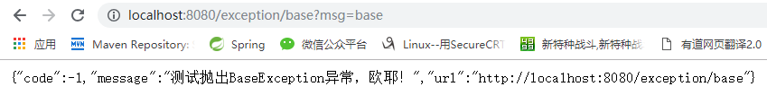 //这里自定义了一个BaseException,当抛出BaseException异常就会被此方法处理