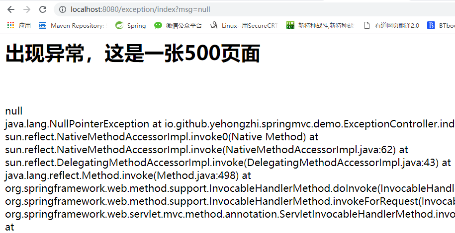 翻译过来就是简单映射异常处理器。用途是,我们可以指定某种异常,当抛出这种异常之后跳转到指定的页面。请看演示。