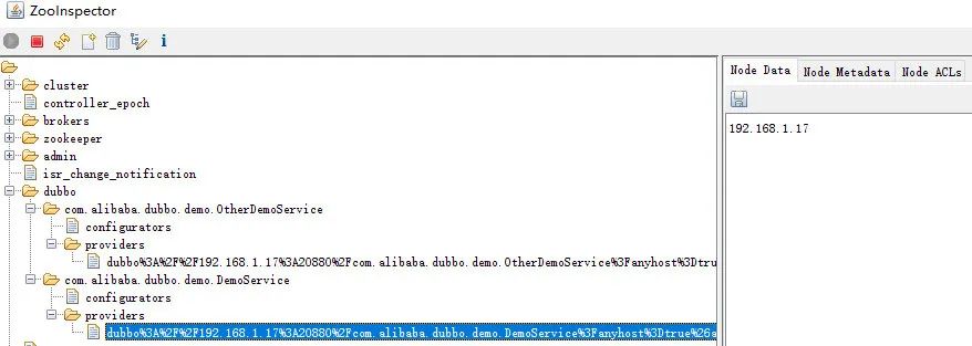 registry://127.0.0.1:2181/com.alibaba.dubbo.registry.RegistryService?application=demo-provider&dubbo=2.0.2&export=dubbo://192.168.1.17:20880/com.alibaba.dubbo.demo.DemoService....