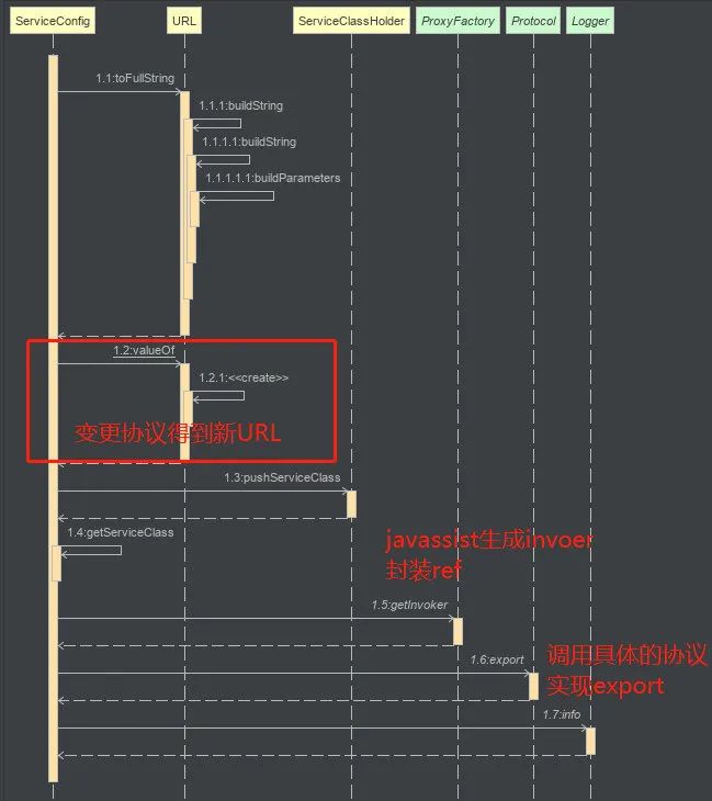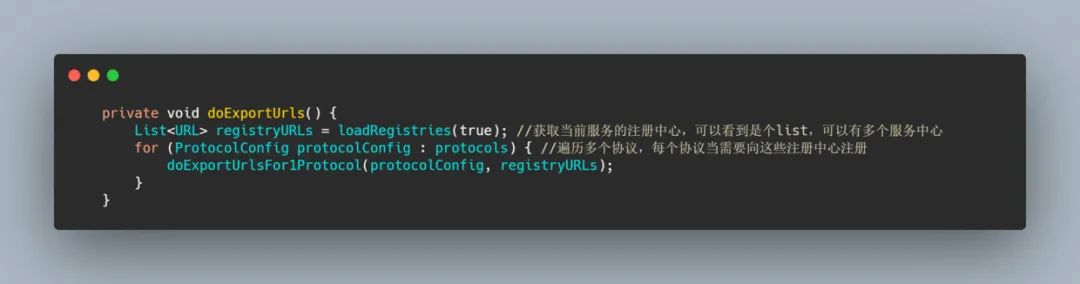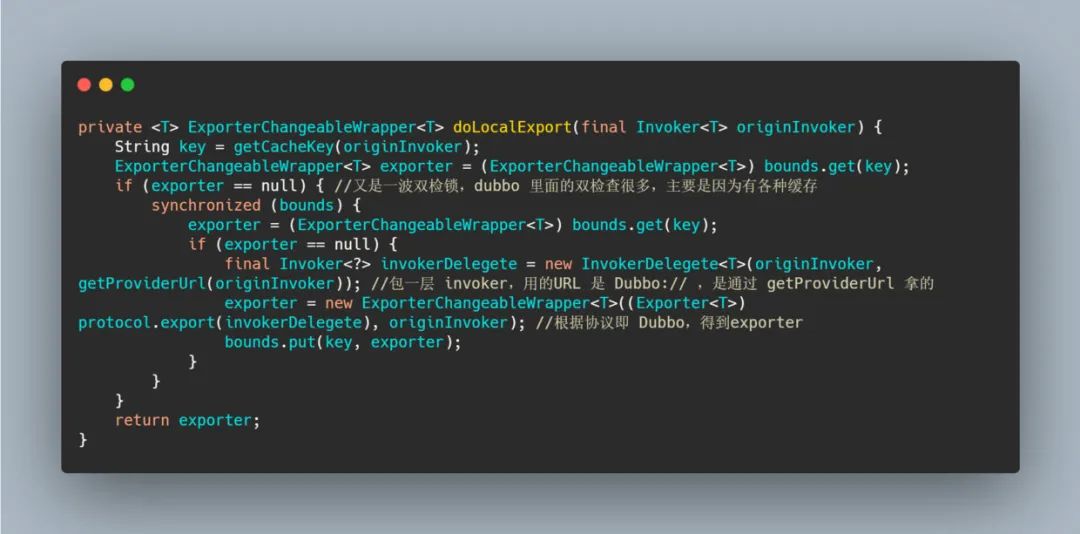 我们接下来关注的重点在 doExportUrlsFor1Protocol 方法中,这个方法挺长的,我会截取大致的部分来展示核心的步骤。