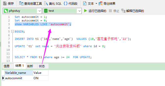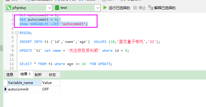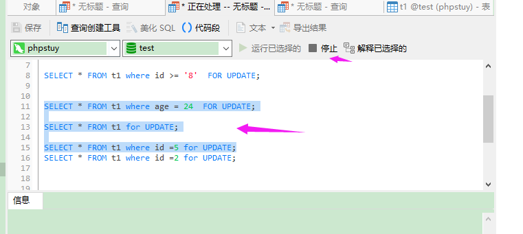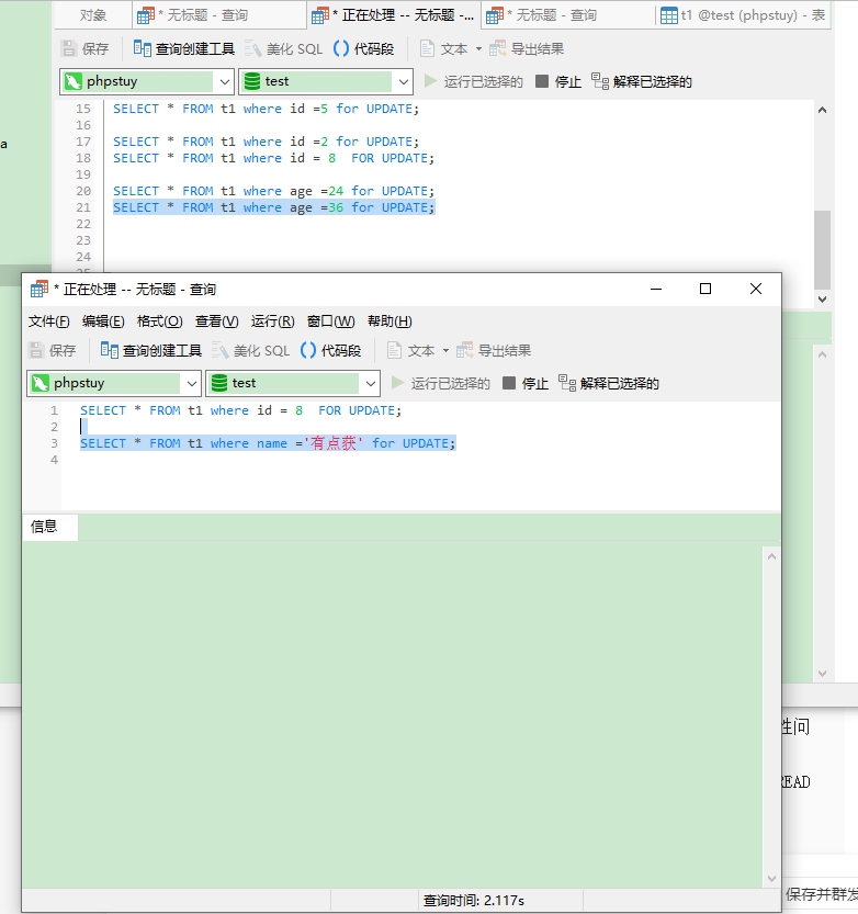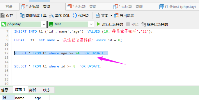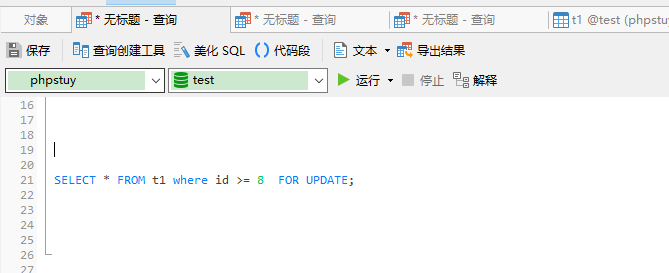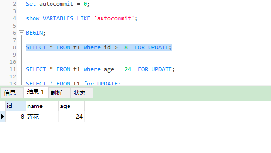 select * from t where id=1 for update;锁定 id =1的记录 -