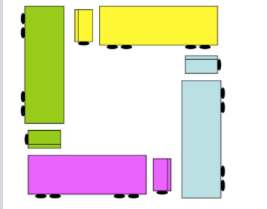 它们相互等待对方的资源,而且形成环路!每辆车可看为一个节点,当节点1需要等待节点2的资源时,就生成一条有向边指向节点2,最后形成一个有向图。我们只要检测这个有向图是否出现环路即可,出现环路就是死锁!这就是wait-for graph算法。