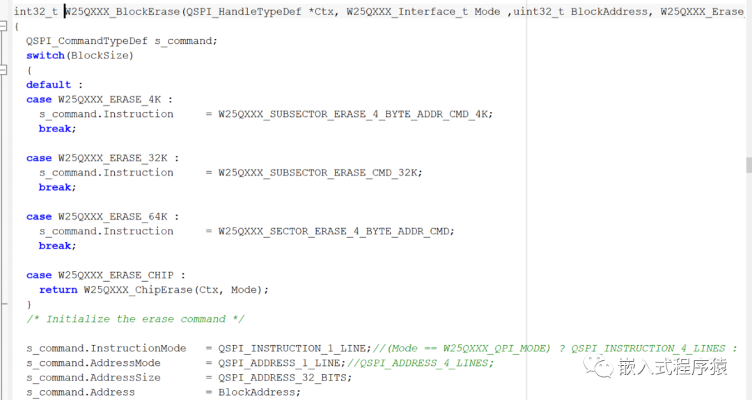 驱动的架构可以参考STM32Cube_FW_H7中对QSPI Flash驱动架构,也可以自己做架构,尽量简单明了,易用且稳定。对具体型号Flash的驱动可以放在一个文件下建立一个.c和.h. 如我们以华邦的W25Q系列为例,