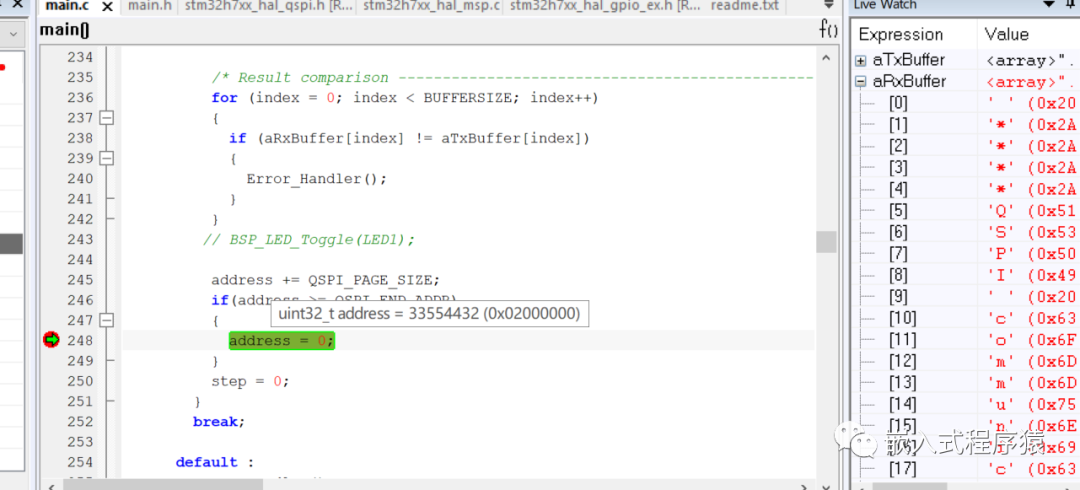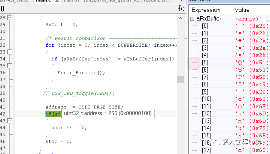 开发完后,就可以写一个简答的测试程序,对自己的驱动进行测试,因为我是在freeRTOS系统下用的,所以建立一个QSPI的测试任务,去实现擦,写,读,比较的功能和验证。截取几张测试图