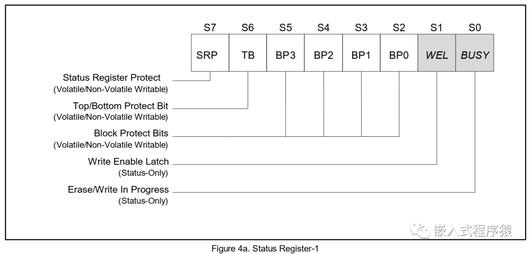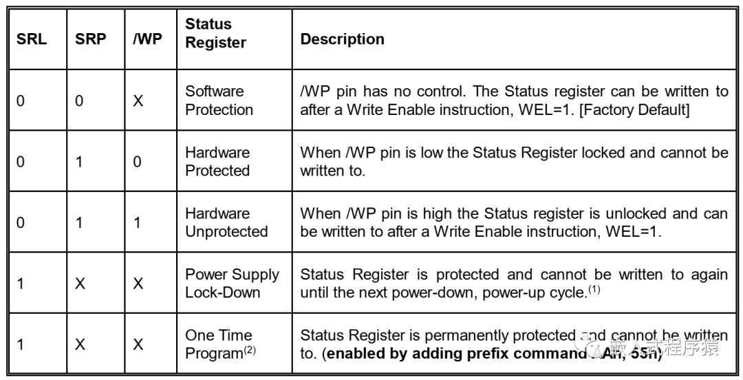 W25Q系列一般有三个状态寄存器,用来表示一些状态,如状态寄存器1就可以通过读取来判断flash的状态,有没有忙,写使能有没有打开,以及保护位保护了那些地址,这些都要自己去实现,市面上包括官方的例程驱动里都没有,假如你不判断的话,如果要写的地址被保护,是写不进去的,还有可能出现异常,这些都可以通过读取状态寄存器1和2来判断和处理。以及结合WP脚。