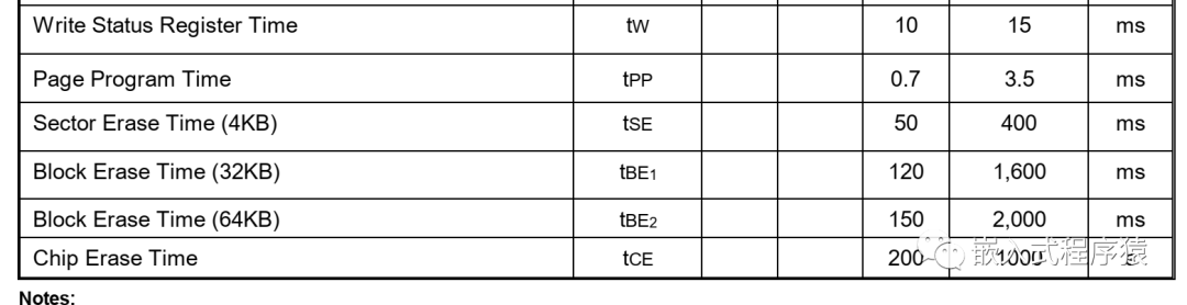 擦除操作比较耗时,所以如果你是用查询模式的话,要不断去查询状态,而不能死等,从手册可以看除时间量级,擦除正片最大需要1000s,还是比较耗时,即使最小的擦除单元4k擦除,最坏情况也需要400ms。用中断或者DMA方式操作的话不涉及,但DMA的话中断需要好几个,有命令,完成,状态匹配,收发完成等。要熟悉这些大概时间量级。方便参考。基于不同模式的驱动我们在公众号里都给大家介绍过。
