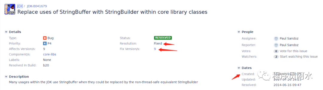 终于在2014年的某一天,一名叫Paul Sandoz的人实在受不了了,于是给openjdk提了个issue,说咱能不能把java内部核心库中用到StringBuffer的地方替换为StringBuilder