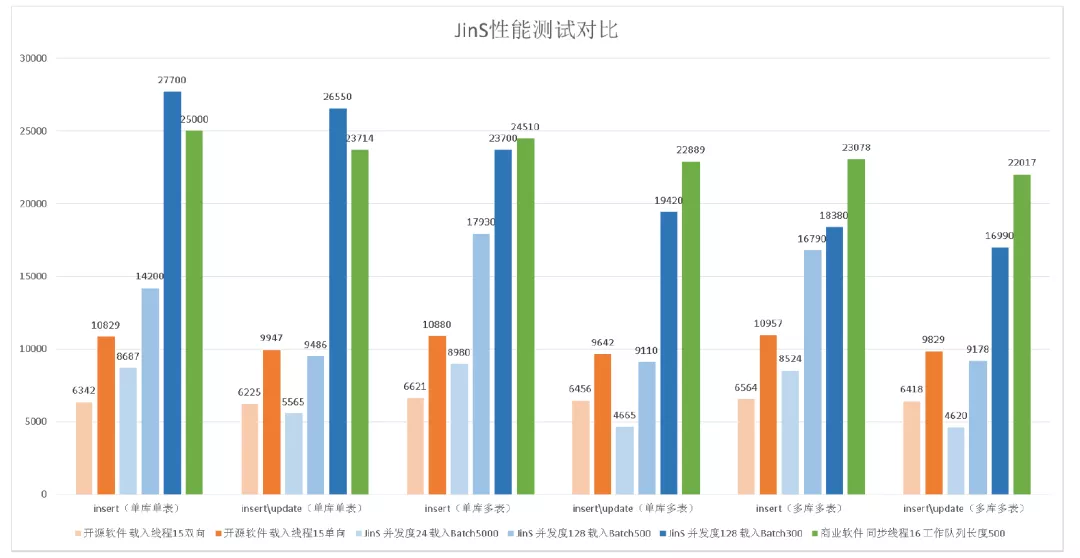 主要针对行业主流开源软件与商业产品与 JinS 数据同步框架的对比测试