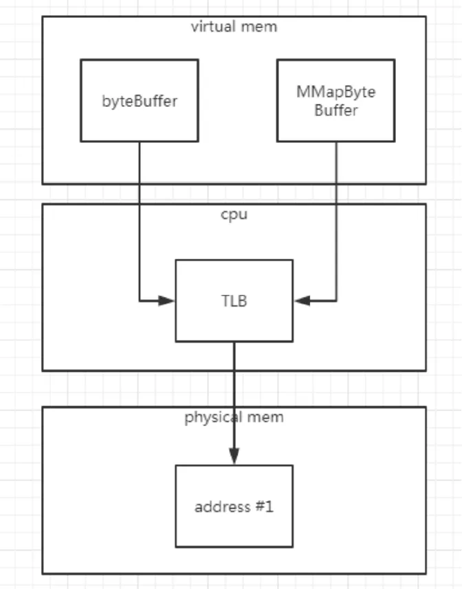 因此我们通过改造,去除读写锁。利用ByteBuffer与MMapByteBuffer同时映射至同一块物理内存来去除读写锁,ByteBuffer负责写入操作,MMapByteBuffer负责读,实现读写分离,如下图所示: