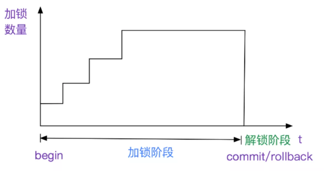 在 InnoDB 事务中,行锁是在需要的时候加上的,加上使用完以后,也并非立刻释放,而是需要等到事务结束以后才会释放。如下图所示: