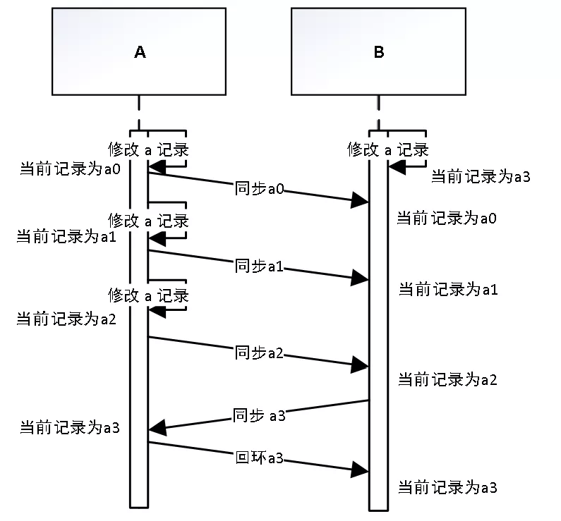 对于双向过程中,对同一记录的修改,由于某地的修改,在另外一个地方处于未可见的一段时间范围,那我们如何确认应该保留哪边修改的?