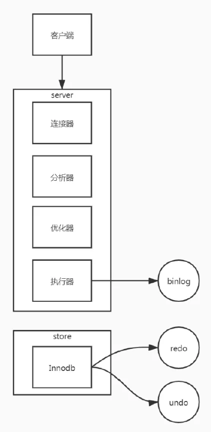 通过上图我们看到,binlog 日志是 MySQL server 层实现的,而 InnoDB 存储引擎自己也实现了自己的redo、undo 日志。我们暂时不考虑 InndoDB 是如何通过 redo、undo 日志实现事务的ACD特性。我们先考虑,MySQL 是如何实现 binlog 与 redo、undo 的一致性的。